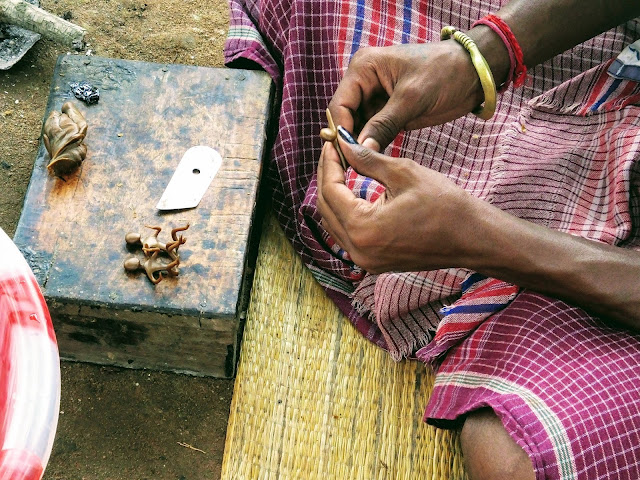 মহিলার অবশ্য এইসবে ভ্রুক্ষেপ নেই। তিনি ঘরের দাওয়ায় বসে নিবিষ্ট মনে কাজ করে যাচ্ছেন, ইতস্ততঃ ছড়ান রঙের পাত্র। ক্যানভাসে দক্ষ হাতের তুলির নিপুণ টানে জীবন্ত হয়ে উঠছে ছবি।